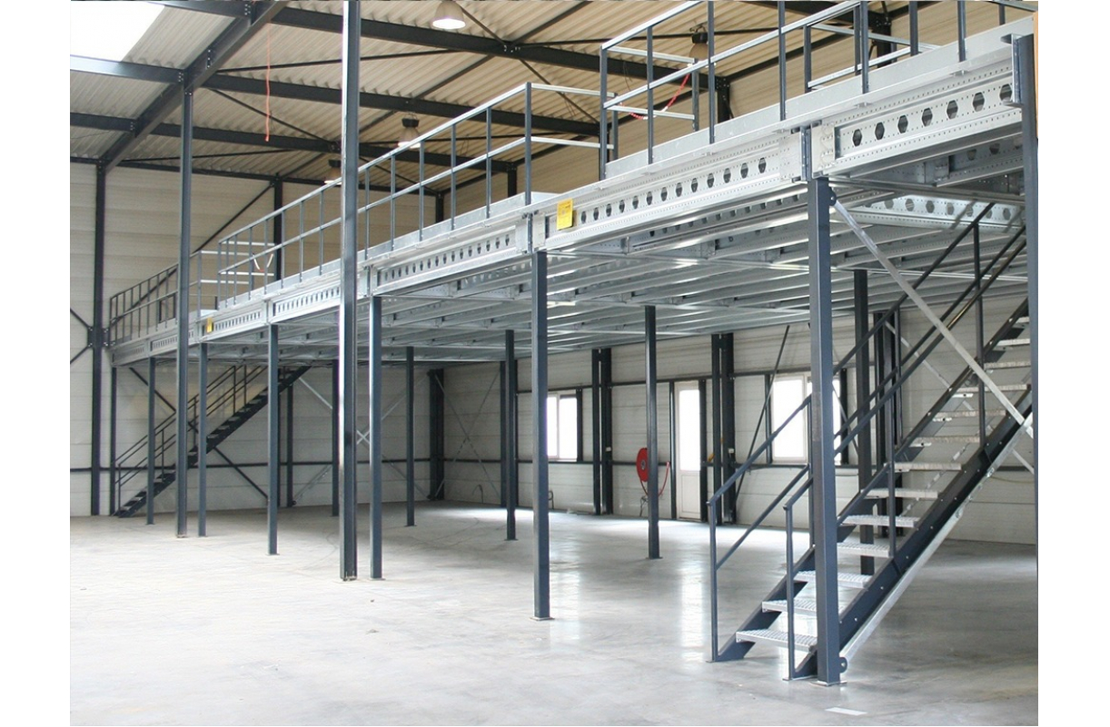 Rack Supported Mezzanine /I-Beam Platform Can be designed as ground + 1/2/3 levels. Increase capacity by double or triple the floor area by storing & accessing material at multiple levels. Heavy Duty/Medium Duty/Bolt Free/Slotted Angle, any kind can be used to build multiple levels of storage. For heavy material storage I-Beam platforms can be used. Staircases, safety hand rails, loading gates provided as per the area & storage needs.